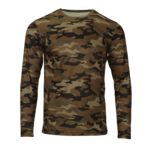 Paragon Adult Woodland Long Sleeve Camo T-Shirt. A modern spin on a standard camo look really stands out with this fresh palette of colors.  Make your connection to nature in comfort with moisture wicking and anti-microbial features, keeping you cool and dry.  Fabric is wrinkle resistant and gives you a UPF50+ sun protection rating.  ParagonXP tear away label, hemmed sleeves and bottom. 3.5 oz